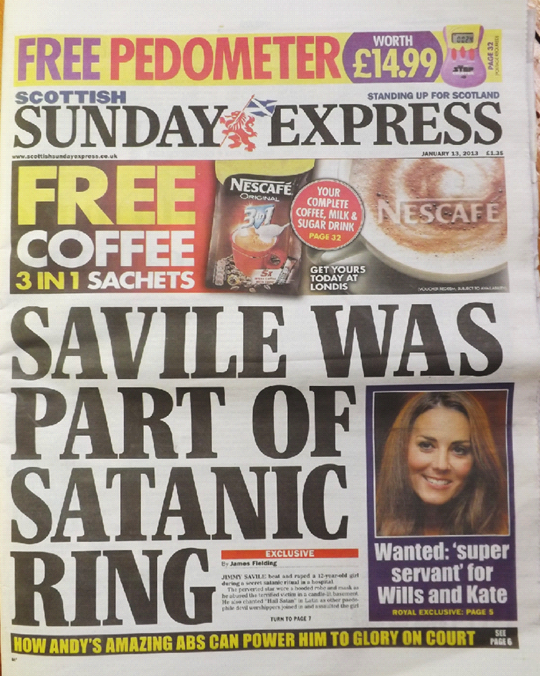 Although state-sponsored search for Satanists waned, the underlying narrative did not disappear. The Aberdeen journalist Robert Green has been investigating the claims of Hollie Greig, a teenager with Down’s Syndrome, since 2000. In Hampstead in 2014, there were public protests outside a local church after a man coached his children to make ritual abuse claims against his ex-partner in a failed attempt to gain custody. Several newspapers reported claims that Jimmy Savile was involved in Satanism (see below), and Operation Midland (2014-2016), accused several prominent political figures of involvement in a paedophile ring in Parliament. It collapsed after an enquiry showed that the key witness, Carl Beech, was a serial fantasist and convicted child abuser. In 2016, Pizzagate (a forerunner of QAnon) attempted to “decode” emails from Democrat politicians to reveal paedophilic and cannibalistic messages. Yet at the same time, Jeffrey Epstein, Prince Andrew, Donald Trump and any number of Bishops seemed time and again to avoid investigation.