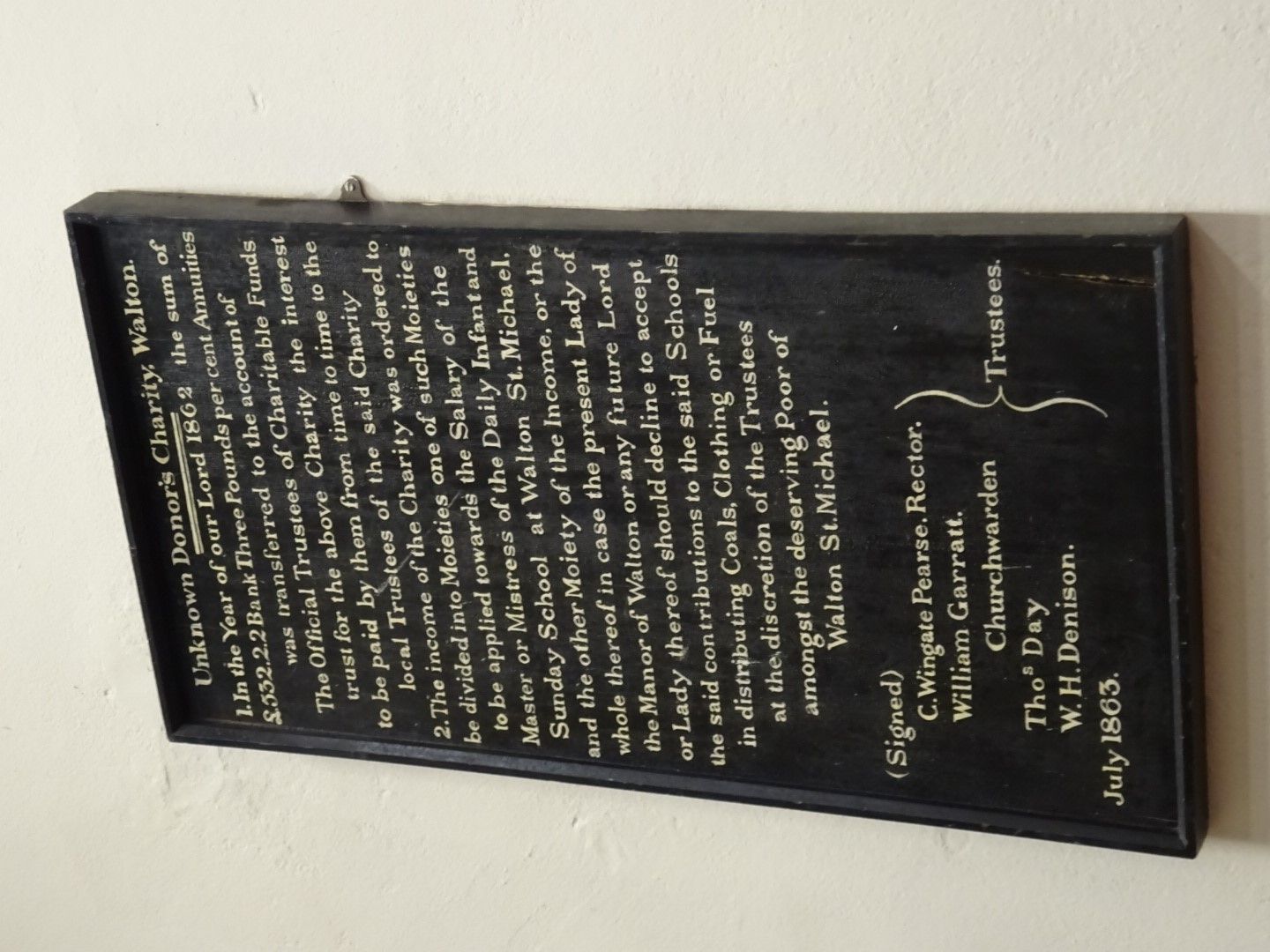 Charity Plaque in St Michael's Church