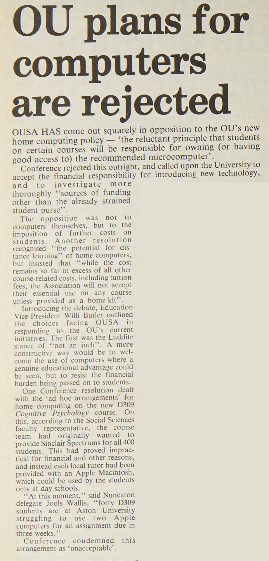 OU Plans for computers are rejected