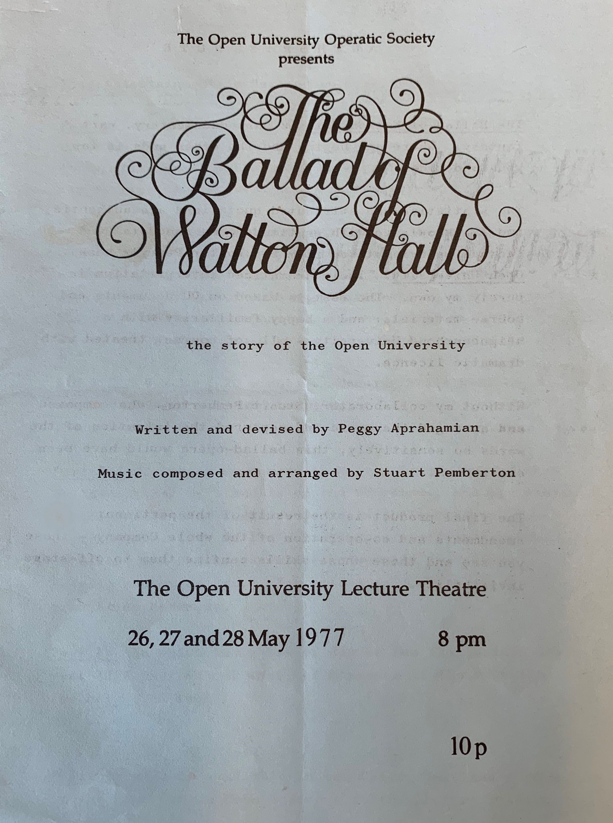 The Ballad of Walton Hall programme