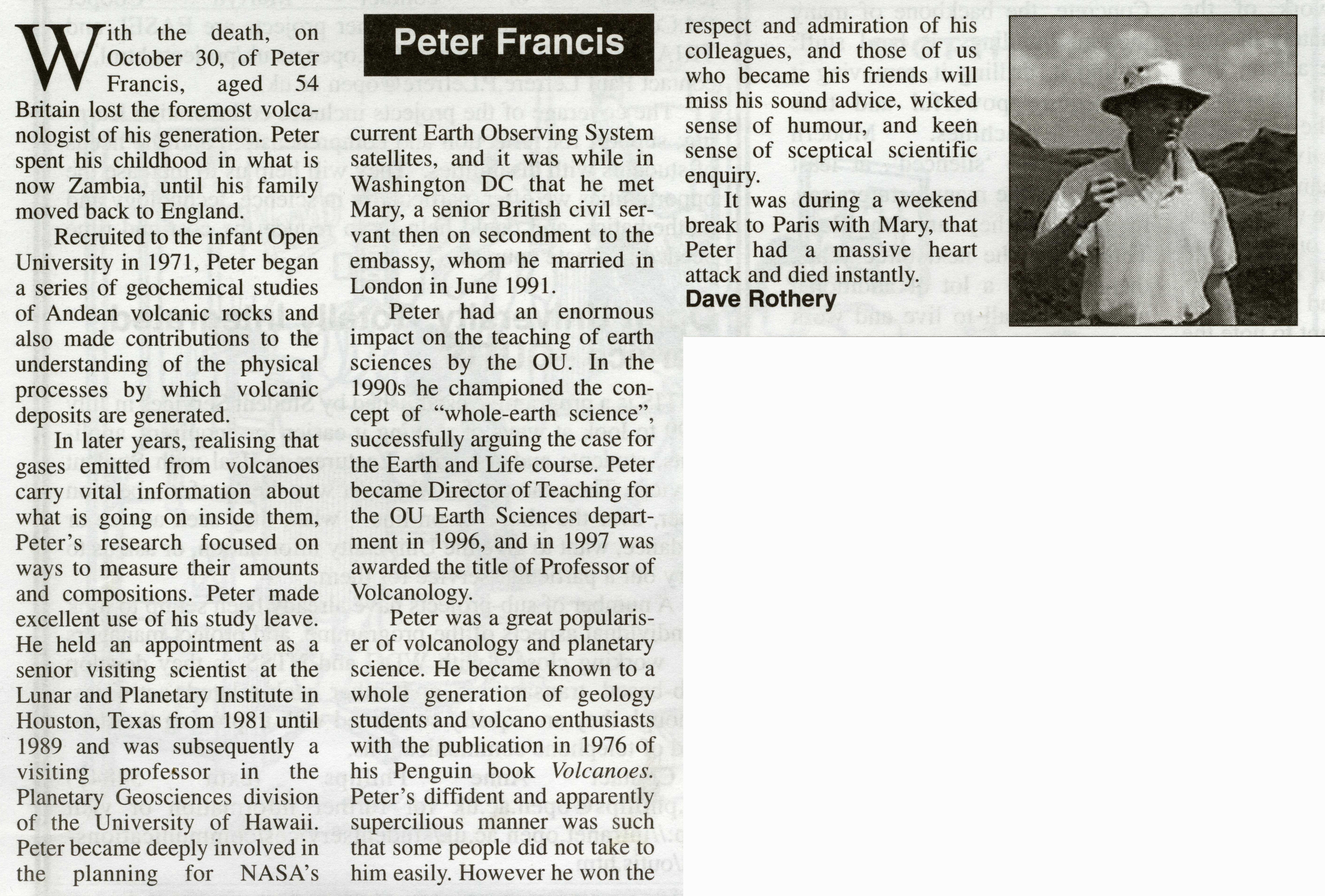 Open House article - Peter Fra...ncis' Obituary