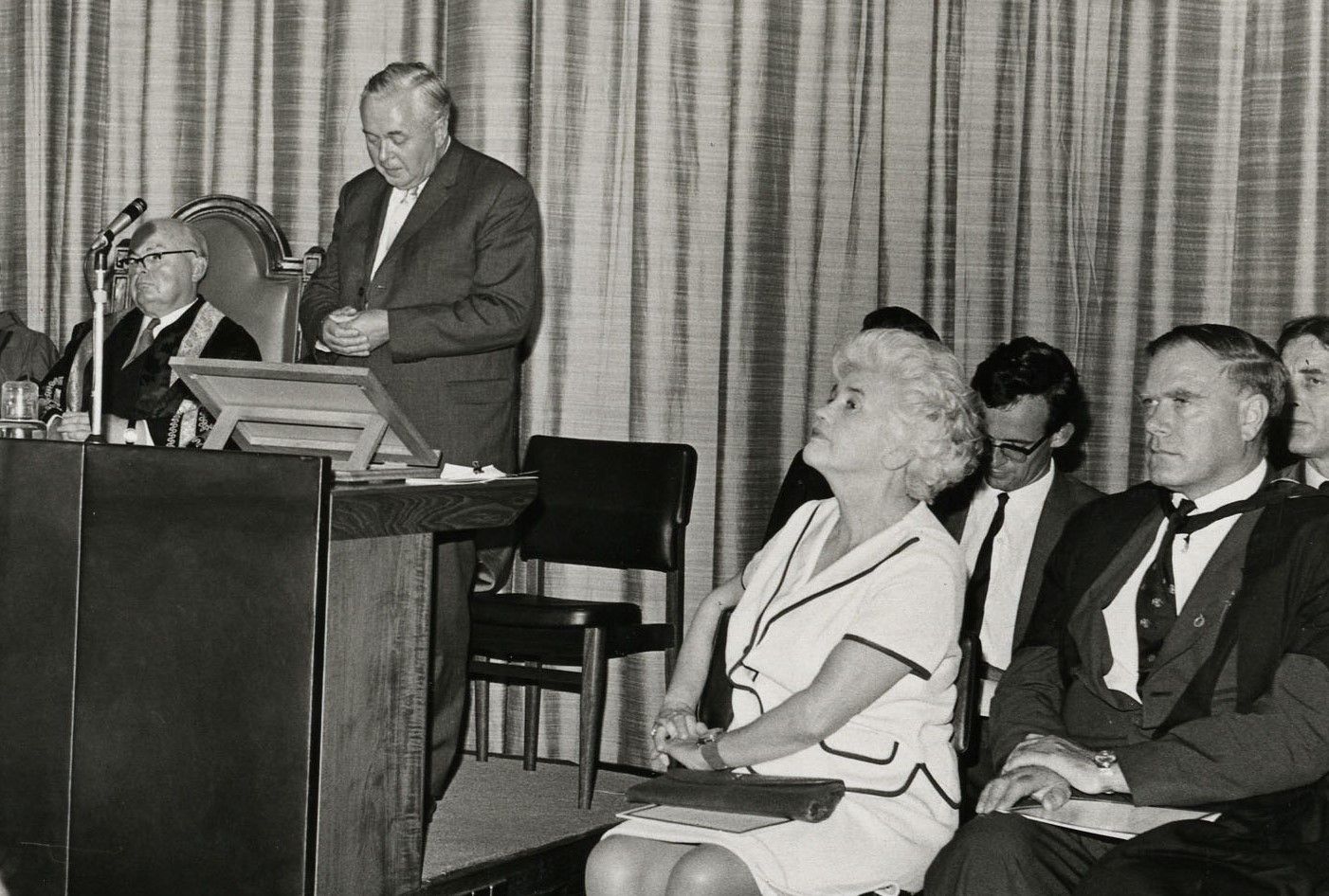 The photograph of the ceremony shows the Prime Minister Harold Wilson speaking and Jennie seated in the foreground.