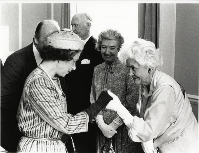 Jennie returned to The Open University in 1979 when it celebrated its 10th Anniversary. The photo on this page shows her with Her Majesty The Queen.