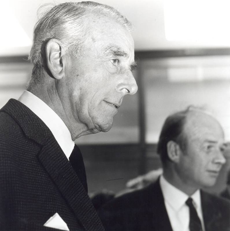 Earl Mountbatten during his visit to the Open University to open the first buildings on the campus. Vice-Chancellor Walter Perry also pictured.