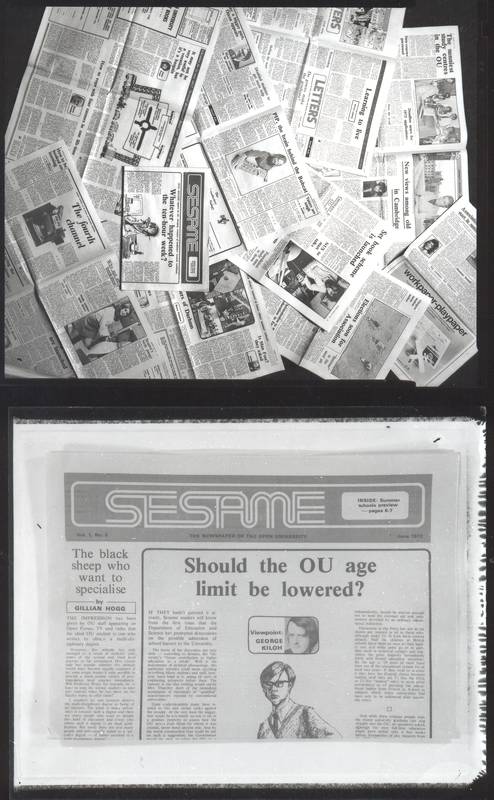 Selection of front covers from the Open University student newspaper Sesame.