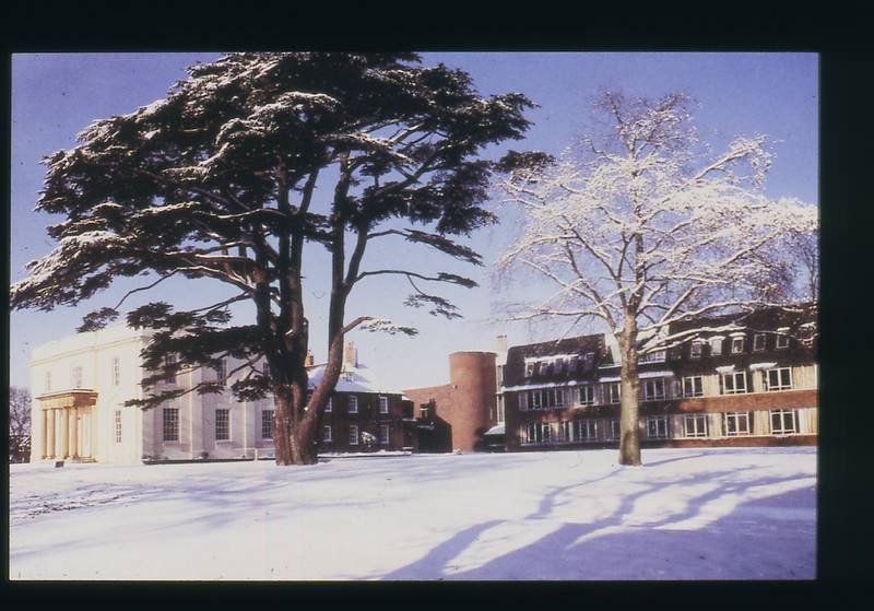 Keyword(s): Walton Hall; trees; snow; winter; Wilson Building