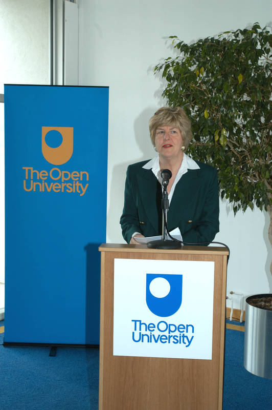 Vice Chancellor Brenda Gourley at the certificate of fairtrade presentation in the Berrill Building on The Open University campus.