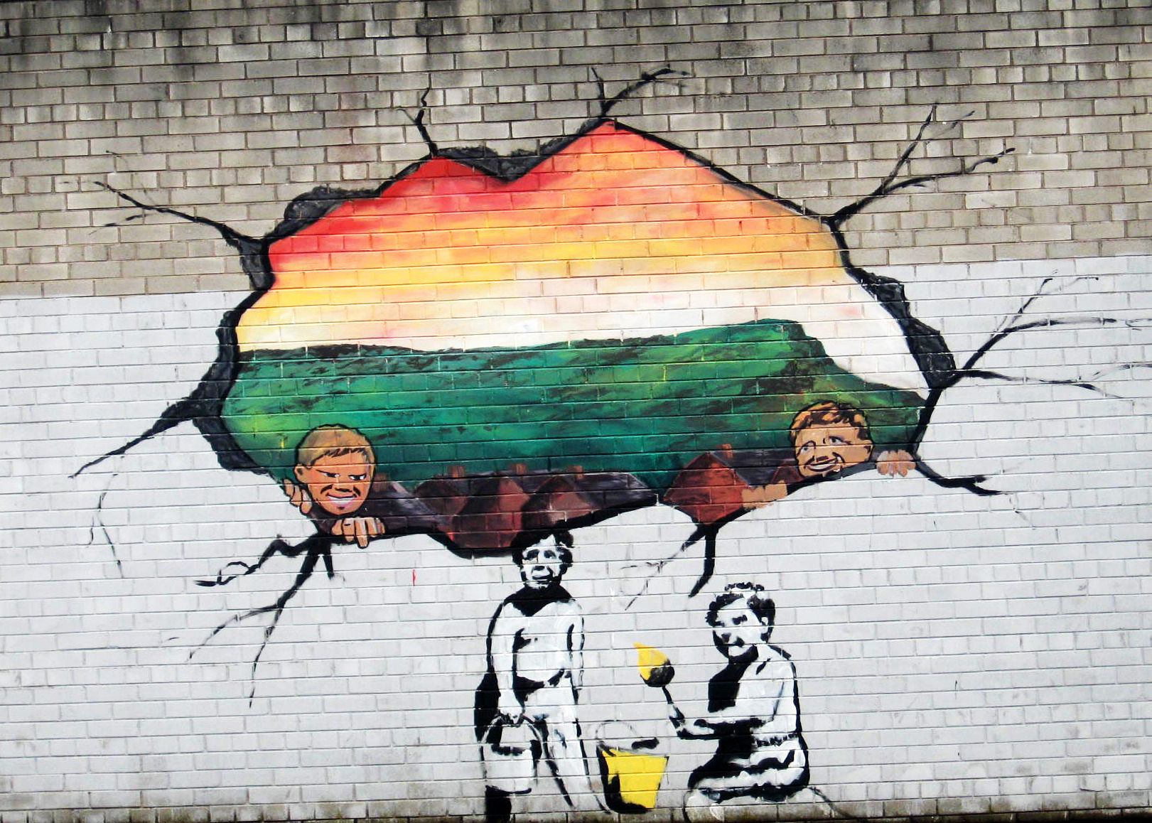 Photograph by Rab Kerr. This photograph is of a section of the International Wall mural on Northumberland Street in Belfast.