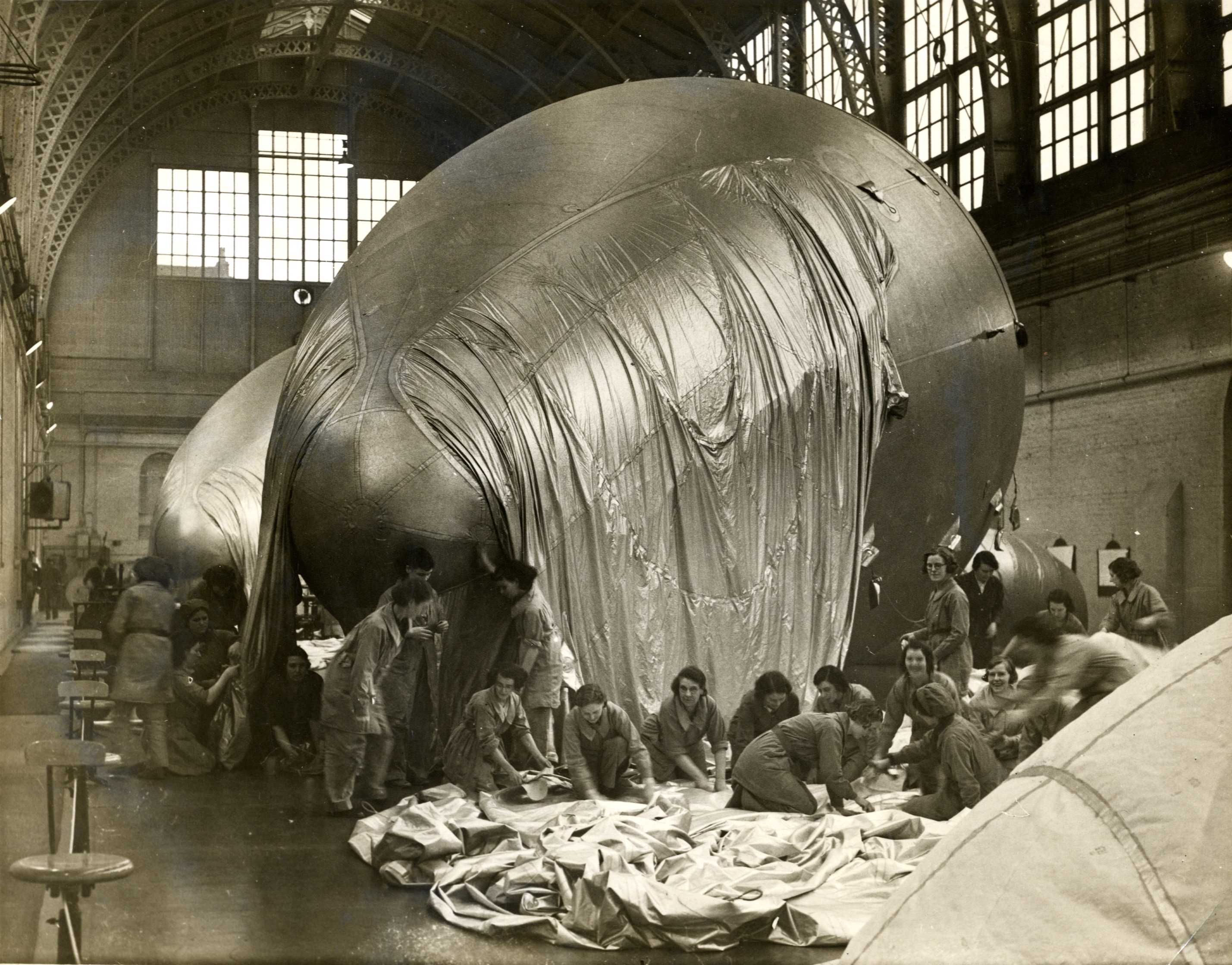 A barrage balloon factory c.1940. Jennie Lee was employed to oversee the production of barrage balloons during the war.
