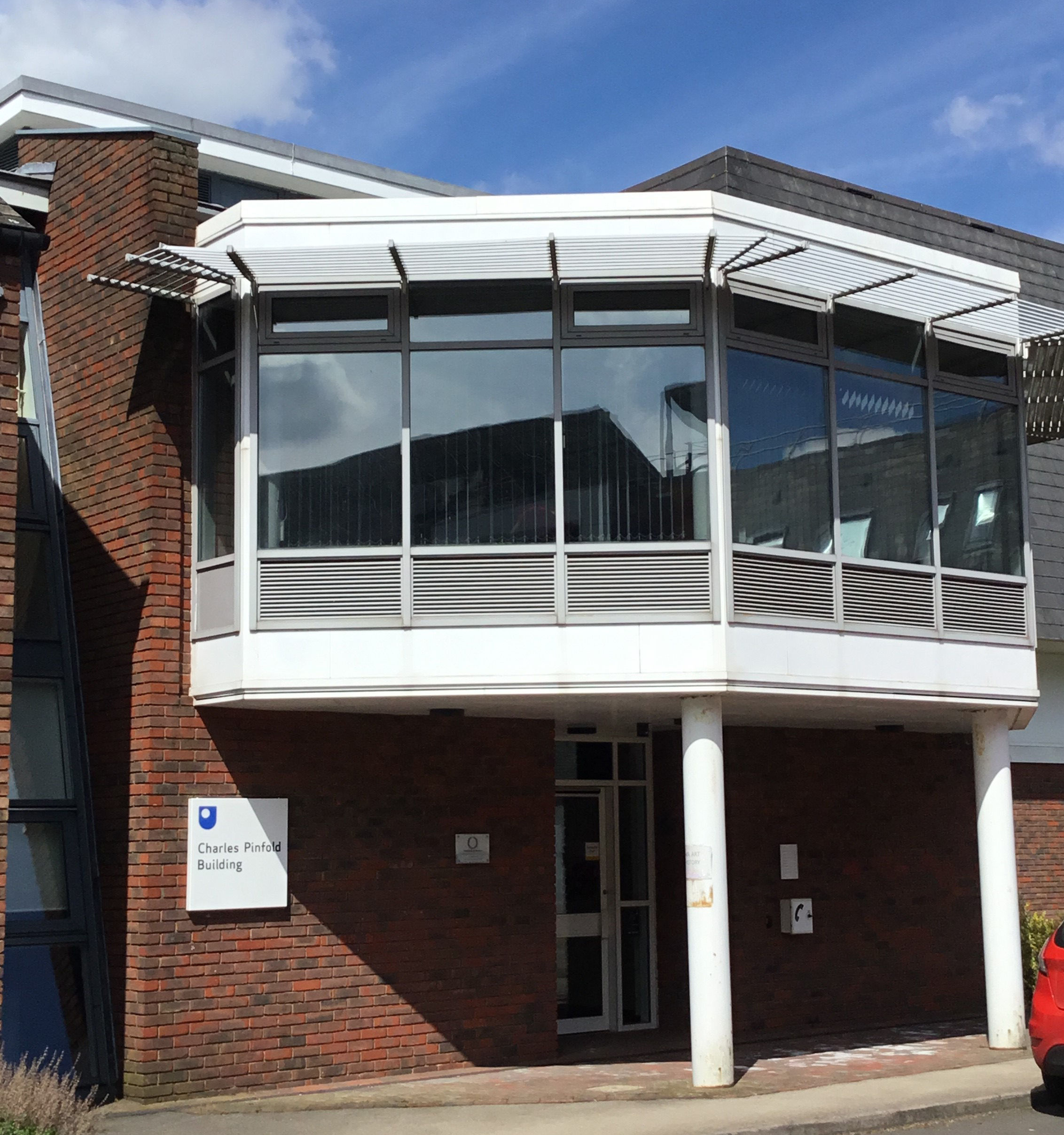 External view of the Charles Pinfold Building on the Open University campus in Milton Keynes. The Pinfold family owned the manor of Walton (the location of the Open University campus) for much of the eighteenth and nineteenth centuries. Captain Charles Pinfold added the square front section of Walton Hall in 1830. The Charles Pinfold Building was originally called Offices 6 in 1996 and was renamed the Charles Pinfold Building in 2010. New Science and Technology workshops were added in 1997.