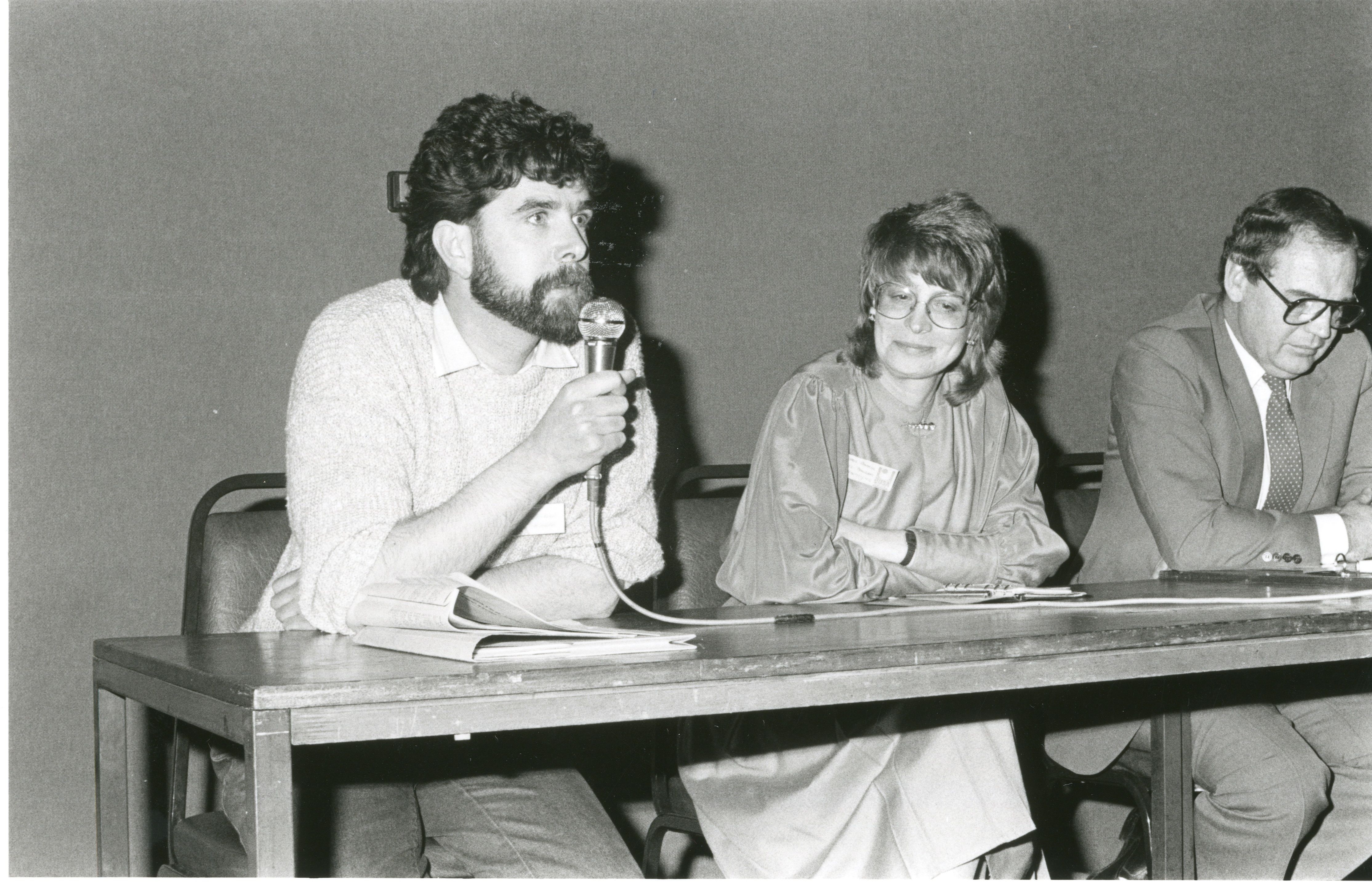 Vice President Education William Butler, President Chris Roworth and Permanent Secretary John Needham at the 1986 OUSA Conference. Photo from OUSA Archive.