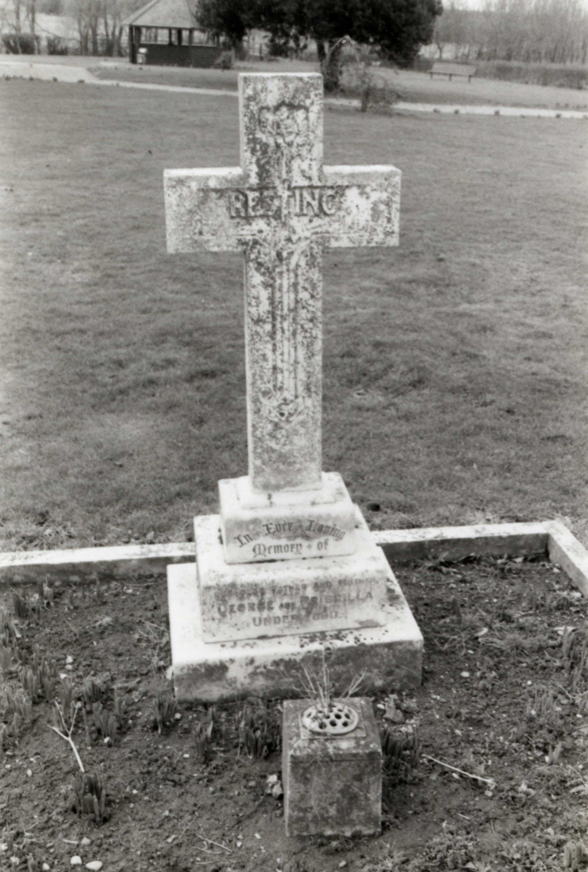 The grave of George and Priscilla Underwood in St Michael's churchyard, Walton Hall, photographed.