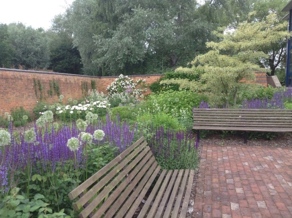 View of the Legacy Garden at the Open University campus in Milton Keynes. On the site of a section of the original walled garden of the Walton Hall Estate.
