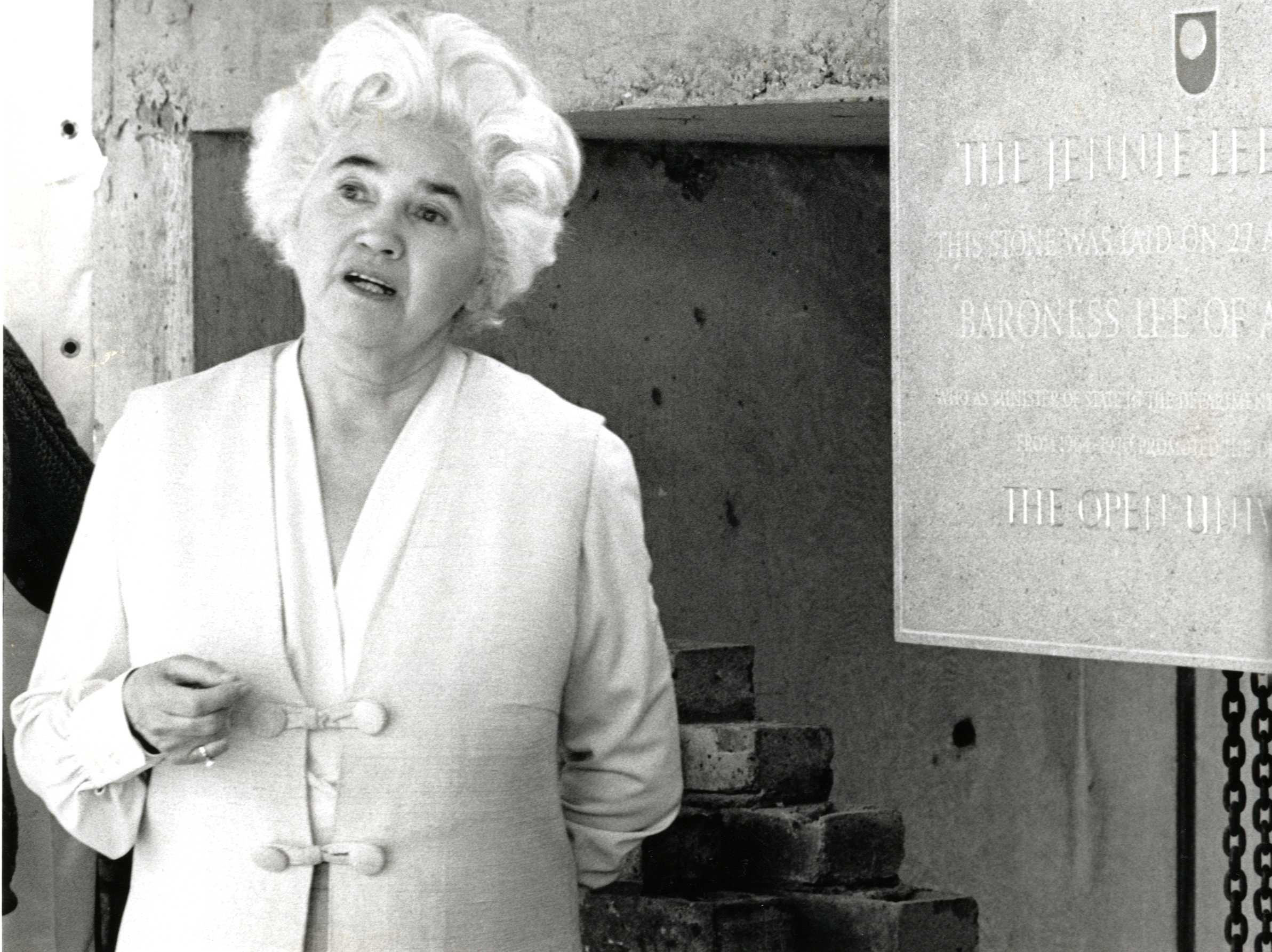 Jennie Lee speaking at the foundation stone laying event of the original Open University Library named in her honour.