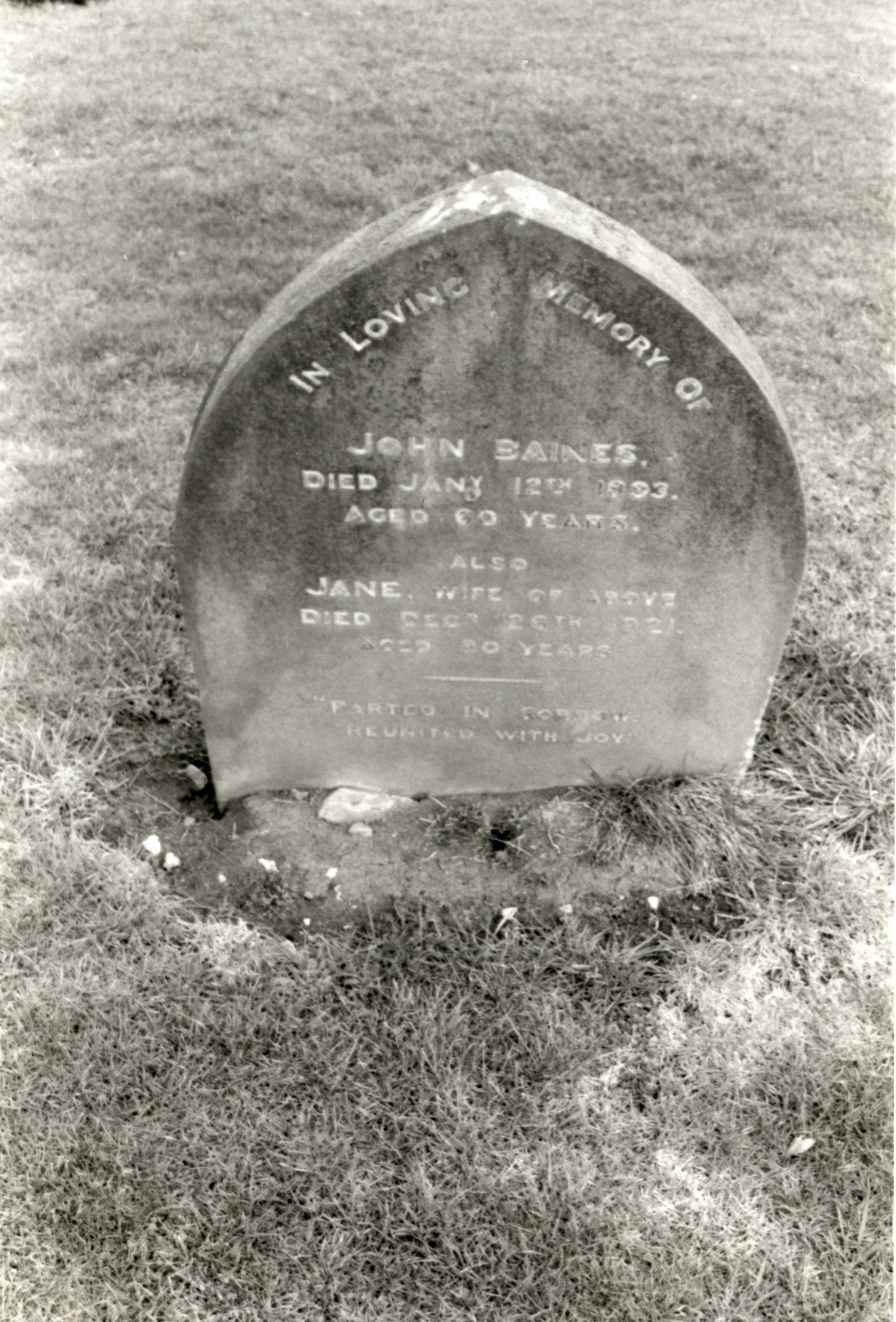 The grave of John and Jane Baines in St Michael's churchyard, Walton Hall, photographed in 1986.