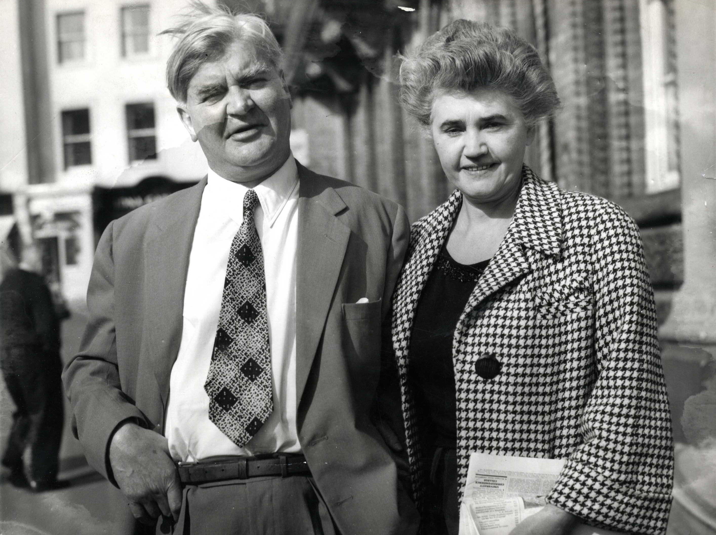Jennie Lee and Nye Bevan in Scarborough for the Labour Party Conference in September 1958. This was the first conference that Jennie attended as a member of the Labour Party Executive Committee.
