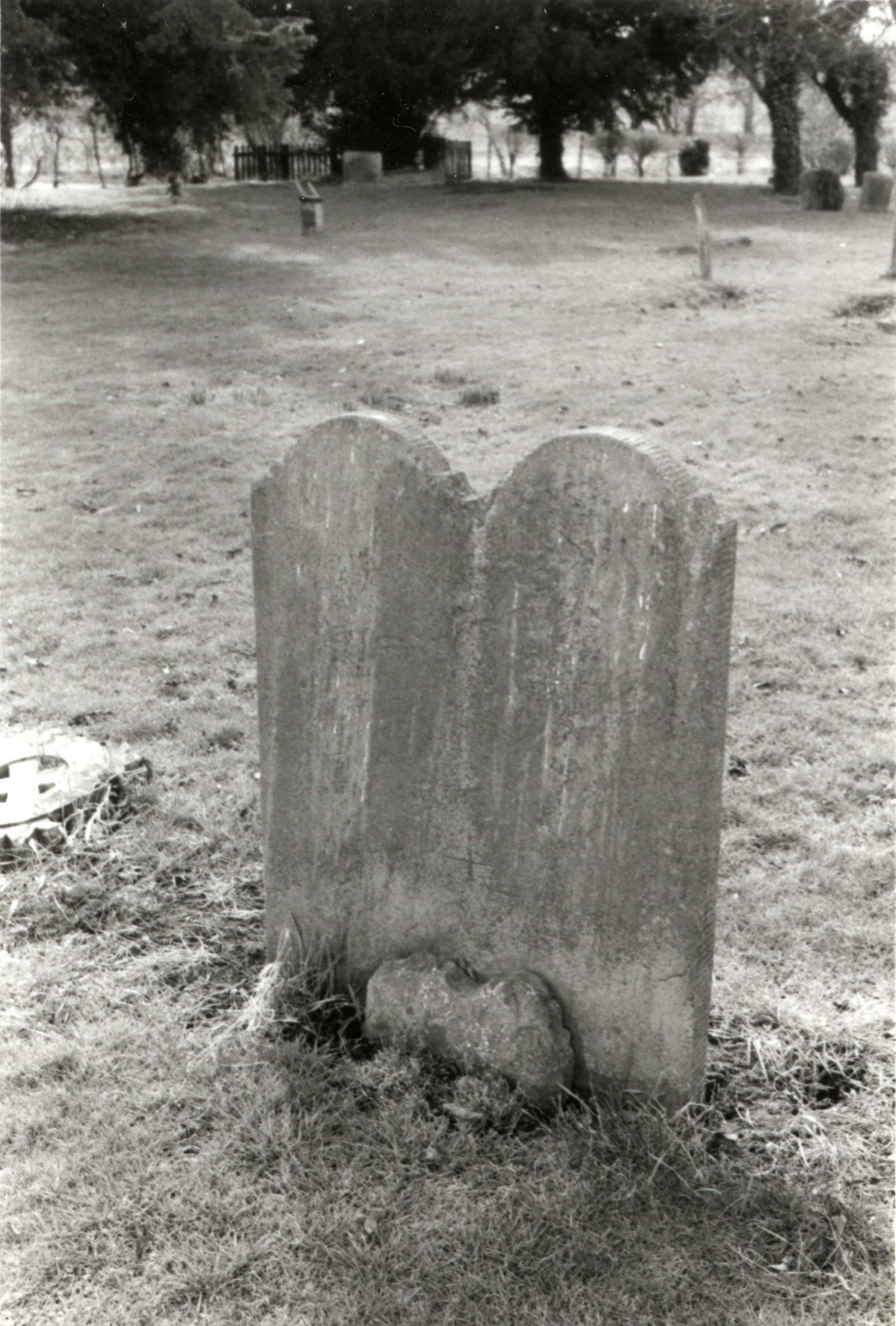 The grave of Mary and Thomas in St Michael's churchyard, Walton Hall, photographed in 1986. The reverse of the headstone is shown.
