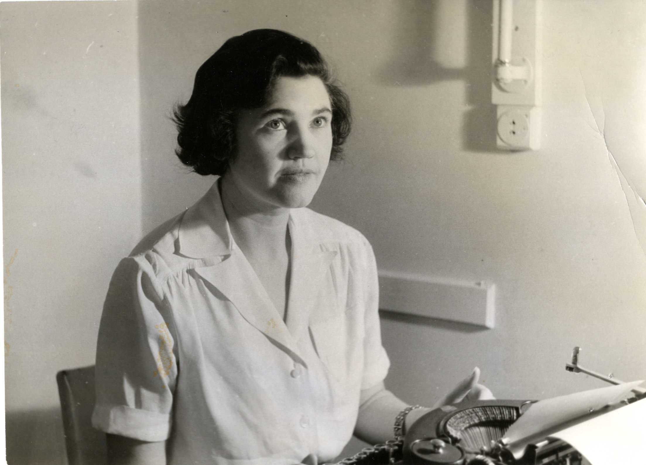 A publicity photograph of Jennie Lee at her typewriter c.1930s.