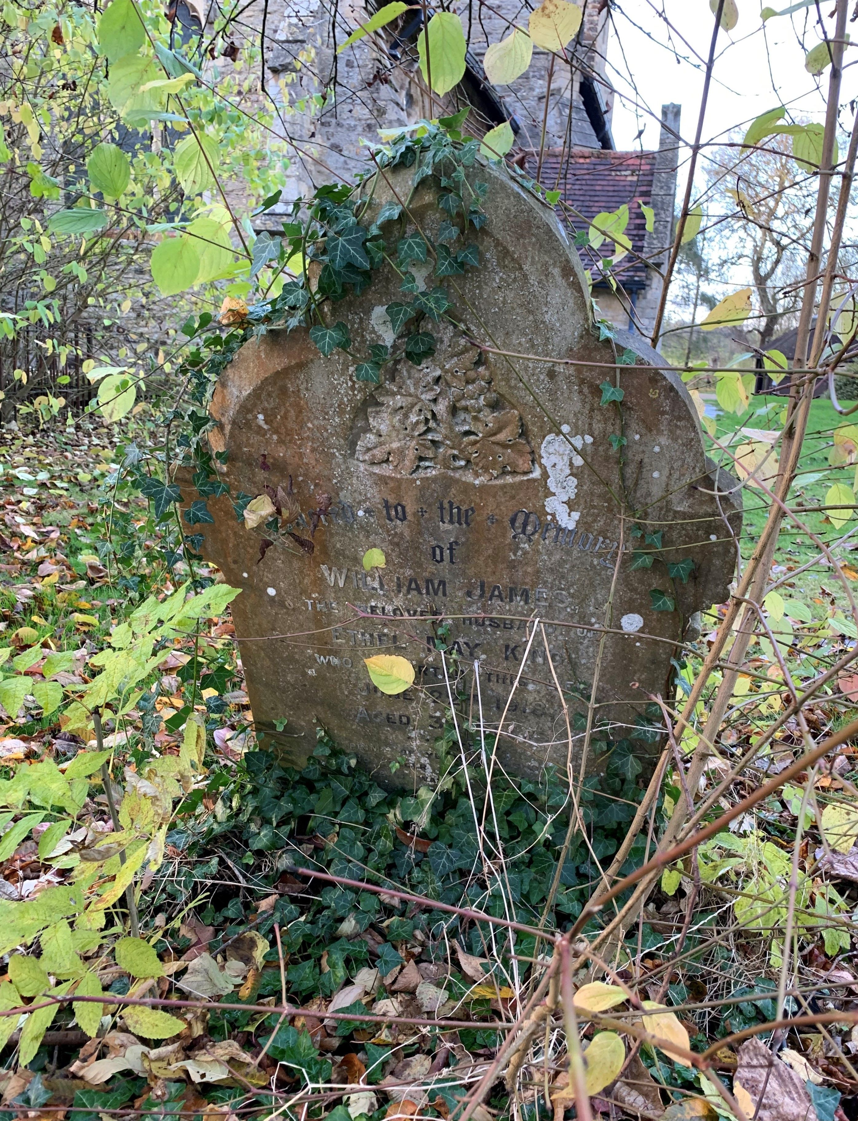 The grave of William James King in St Michael's churchyard, Walton Hall, photographed in 2021.