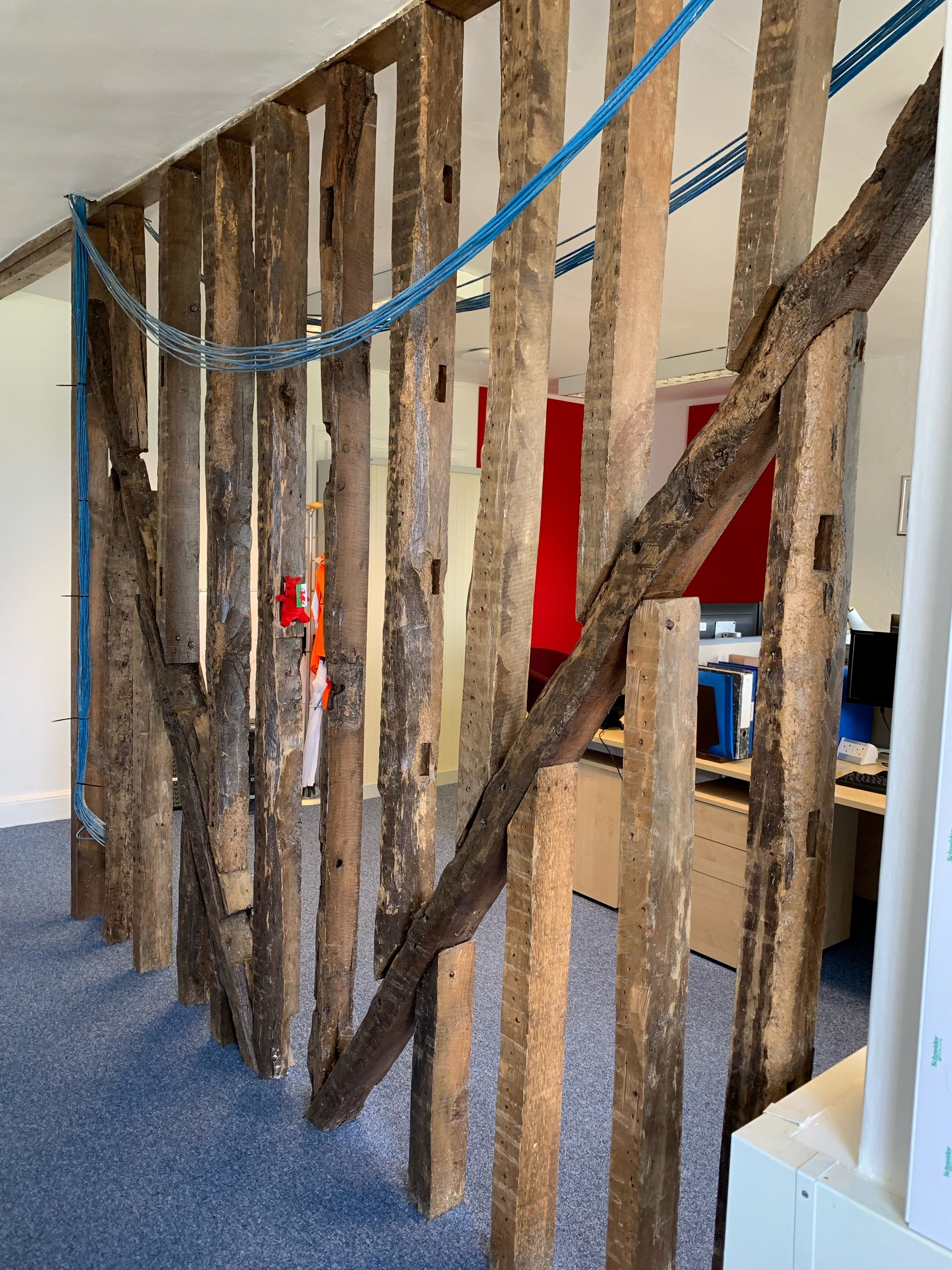 Original interior timber frame situated in the old part of Walton Hall, possibly dating from the 17th century.