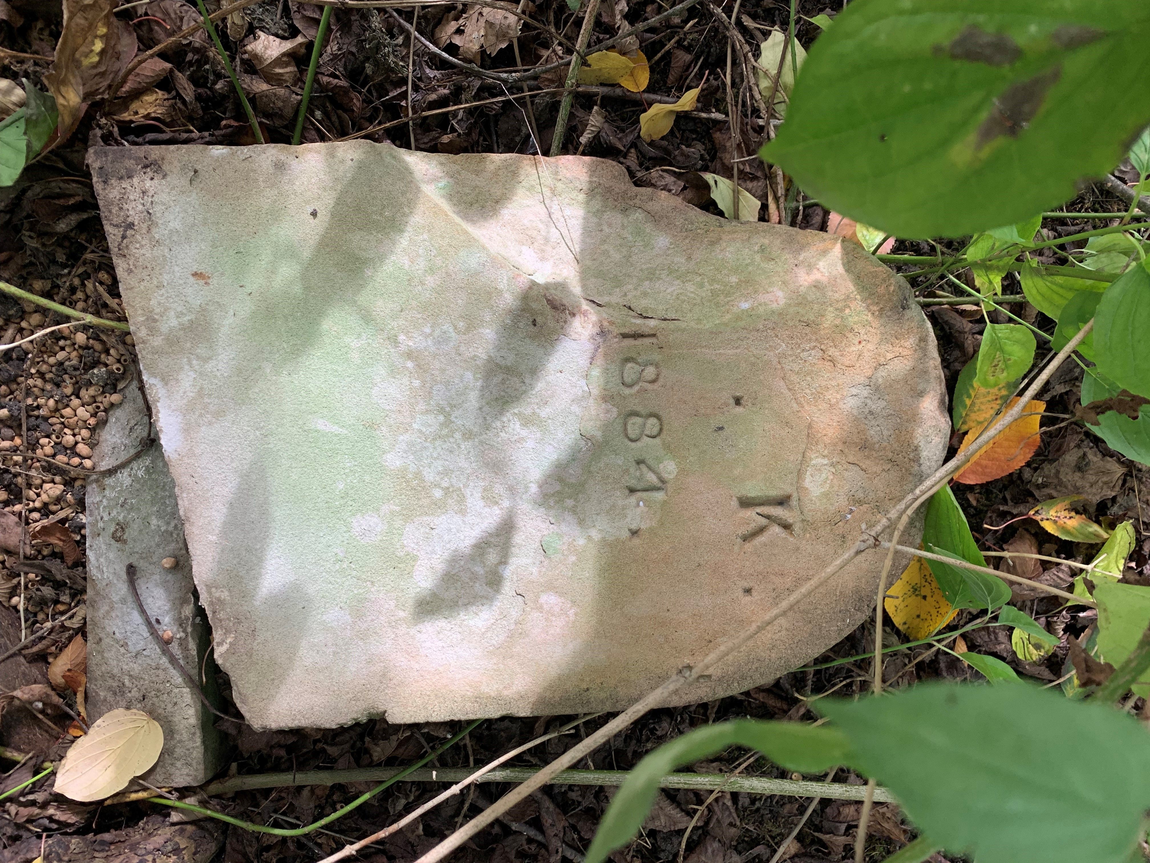 The grave of George King in St Michael's churchyard, Walton Hall, photographed in 2022. This is a grave marker stone, the original headstone is missing.