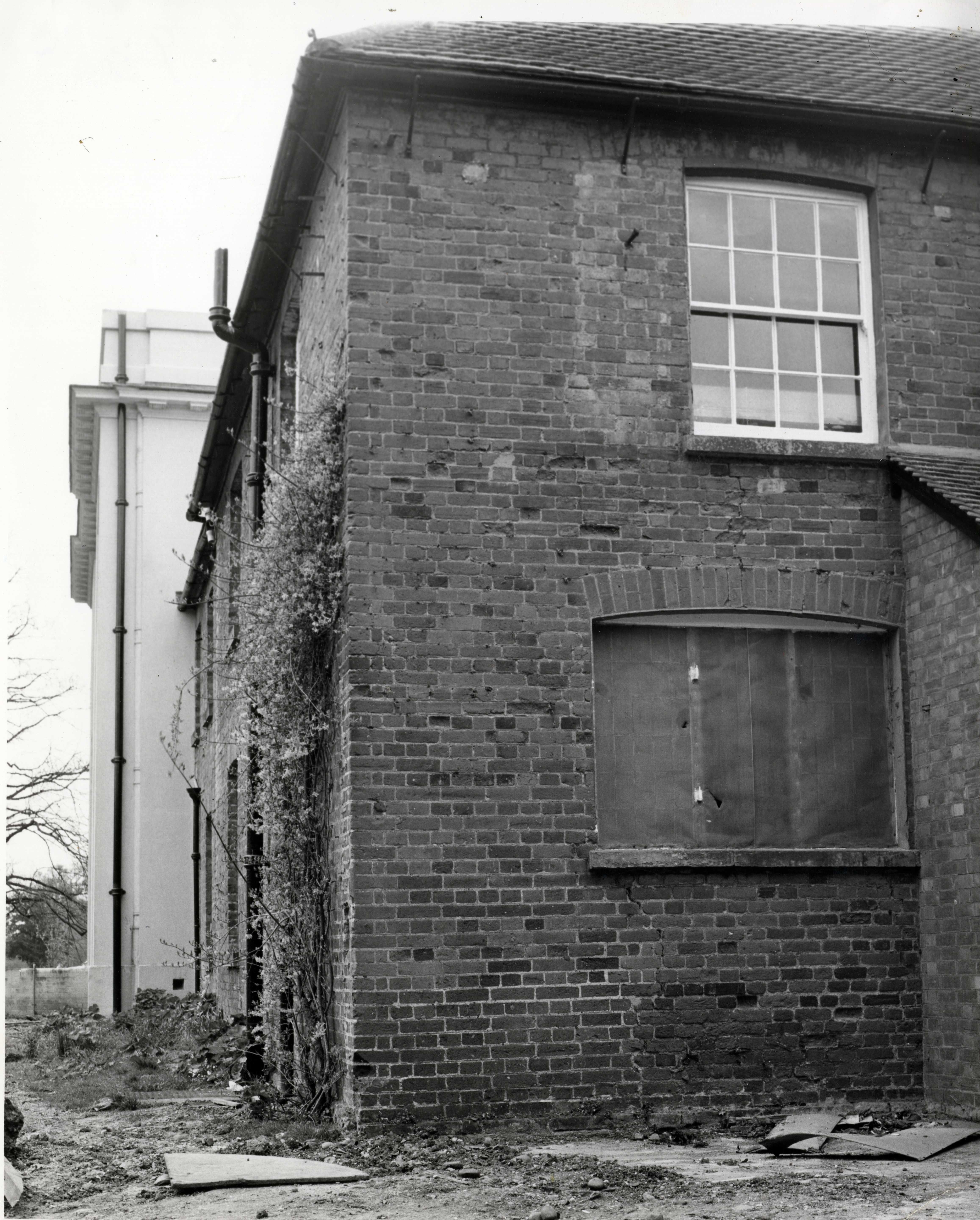 Rear view of Walton Hall on The Open University campus taken in 1972. This brick built part of the building dates back to the 17th Century.