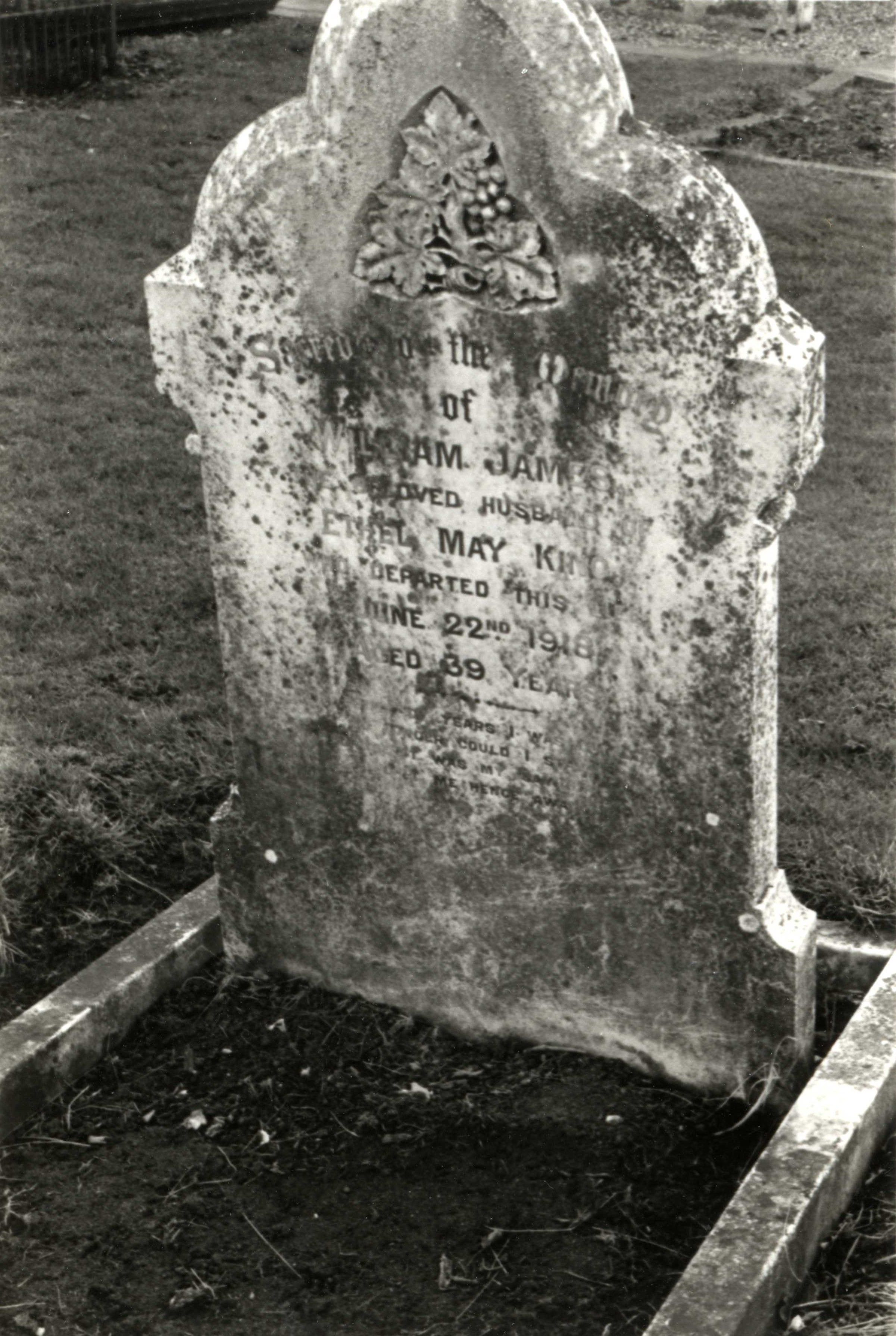The grave of William James King in St Michael's churchyard, Walton Hall, photographed in 1986.
