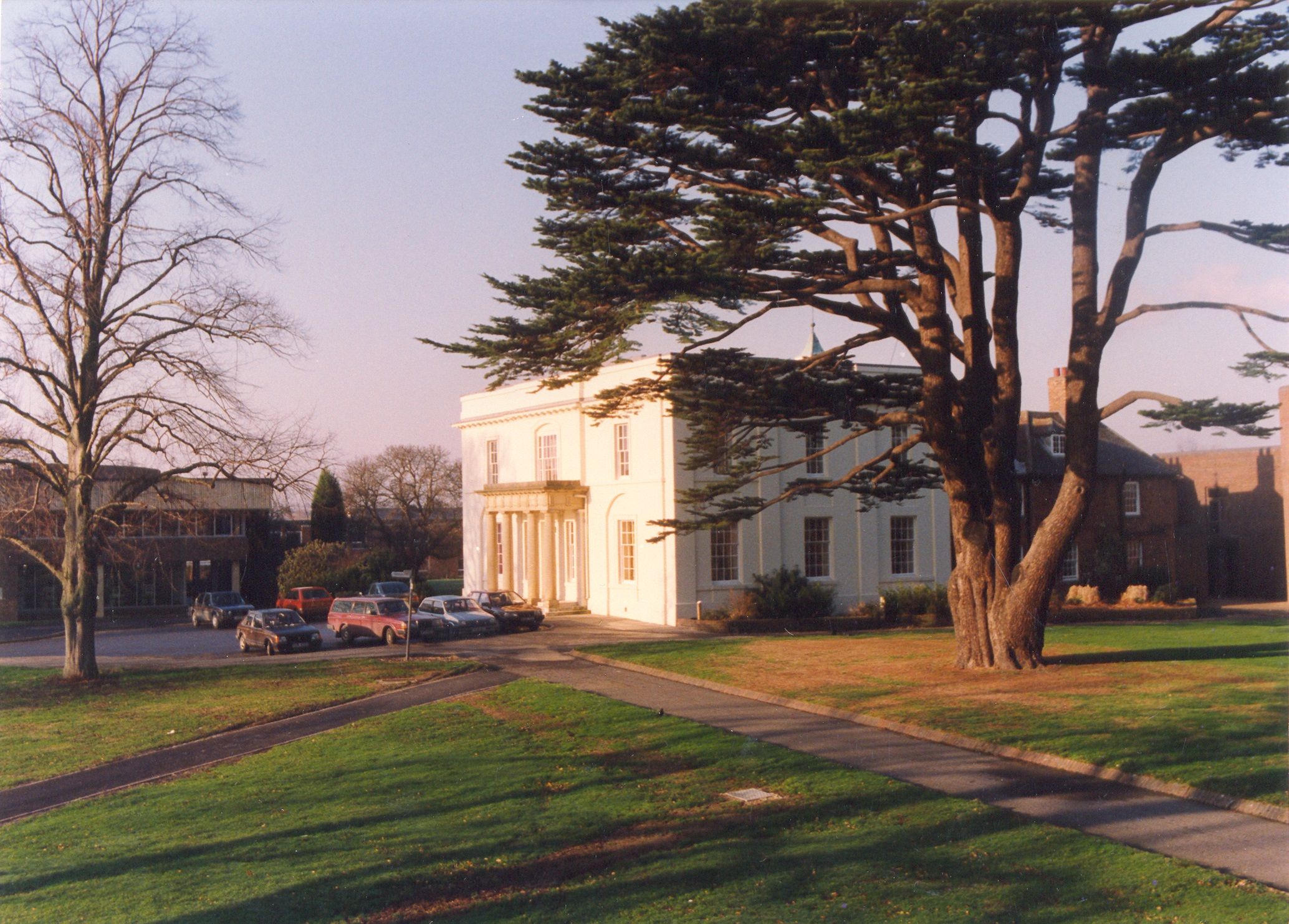 Walton Hall with the cedar tree in the foreground. The tree was probably about 250 years old when this photograph was taken. The date of the photograph is unknown but is most likely c.1990.